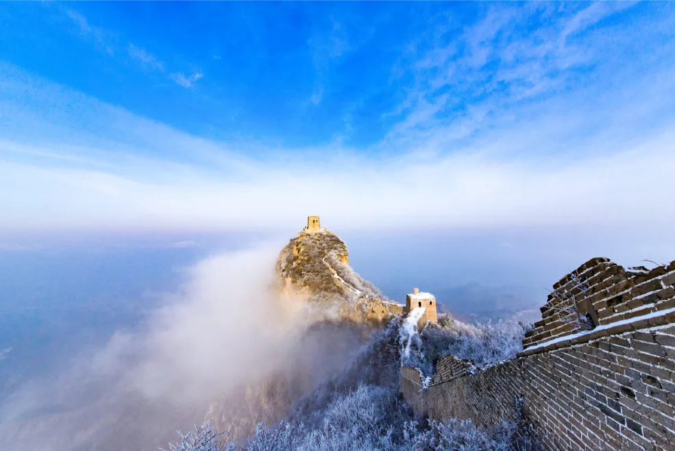 早餐后,我们一起登临【司马台长城】,俯瞰冰雪长城蜿蜒百里,好似龙腾山岳的壮观冬景。这里是唯一保留明代原貌的古长城,整个长城城墙依险峻山势而筑,以奇、特、险著称,保存有完整的20座敌楼,尤其望京楼筑于海拔千米的陡峭峰顶,司马台长城被联合国教科文组织确定为“原始长城”。英国的泰晤士报2012年将司马台长城评为“全球不容错过的25处风景之首”。