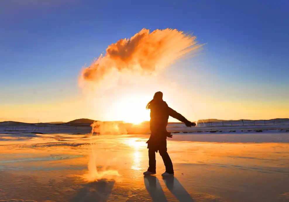 中午我们将在雪地上品尝【内蒙涮肉宴】,成盘的羊肉嫩红,下入滚开的水中,遇水即熟,鲜嫩可口,驱寒暖身!享受冰火两重天!