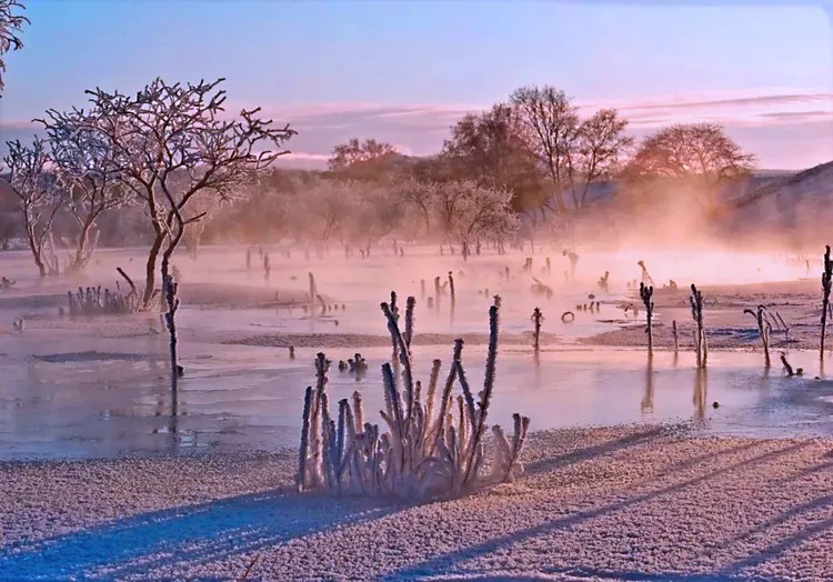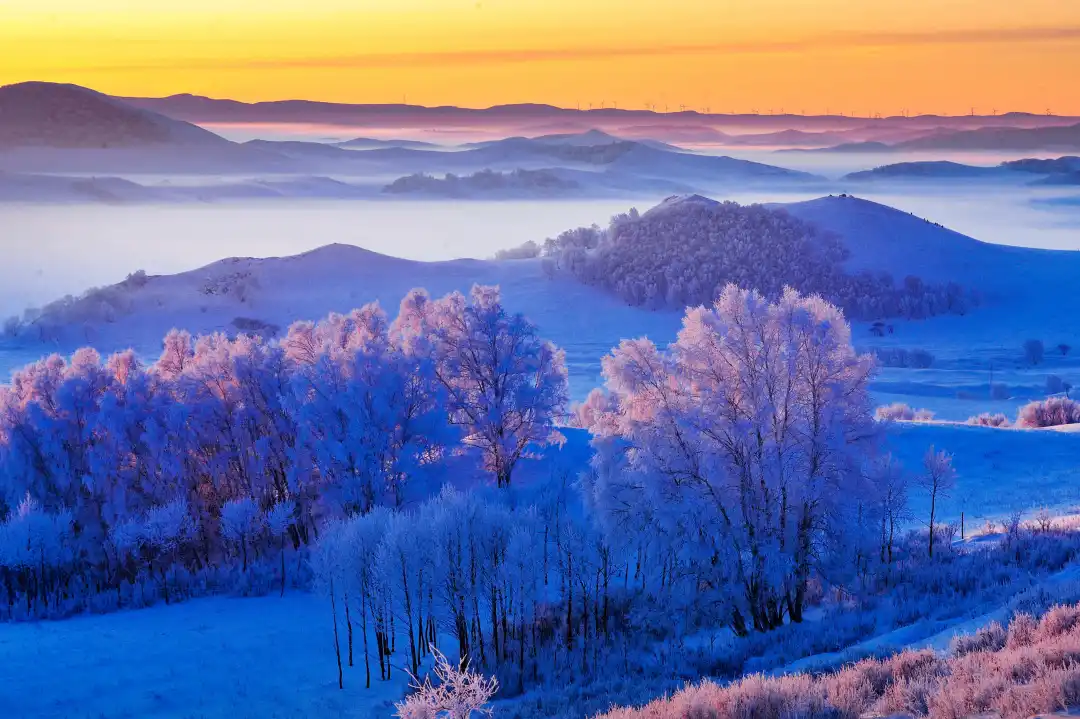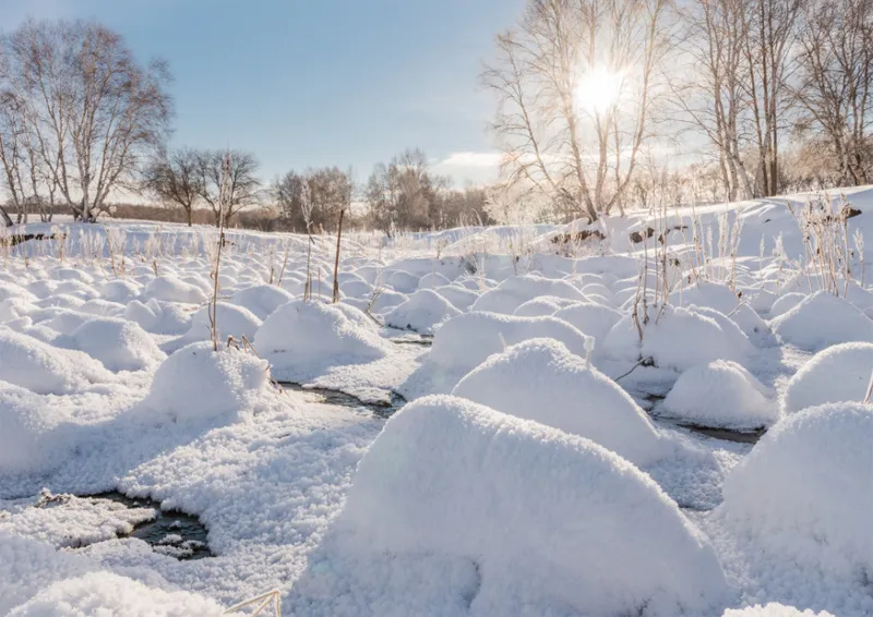今天早起前往【小河头村】看日出,冬日的小河头依然有活水流淌,冰上有河柳灌木被冰雪覆盖,河水鼓泡冻成的冰花是这里的一绝,早晚雾气升起,极易形成雾凇。在这里感受冬季草原日出的壮丽,你可以看到雪中挺拔的白桦林,蜿蜒河流中洁白的雪馒头,小河头村风光、羊群出牧,你可以用手中的相机,定格冬季坝上的雪域风光。