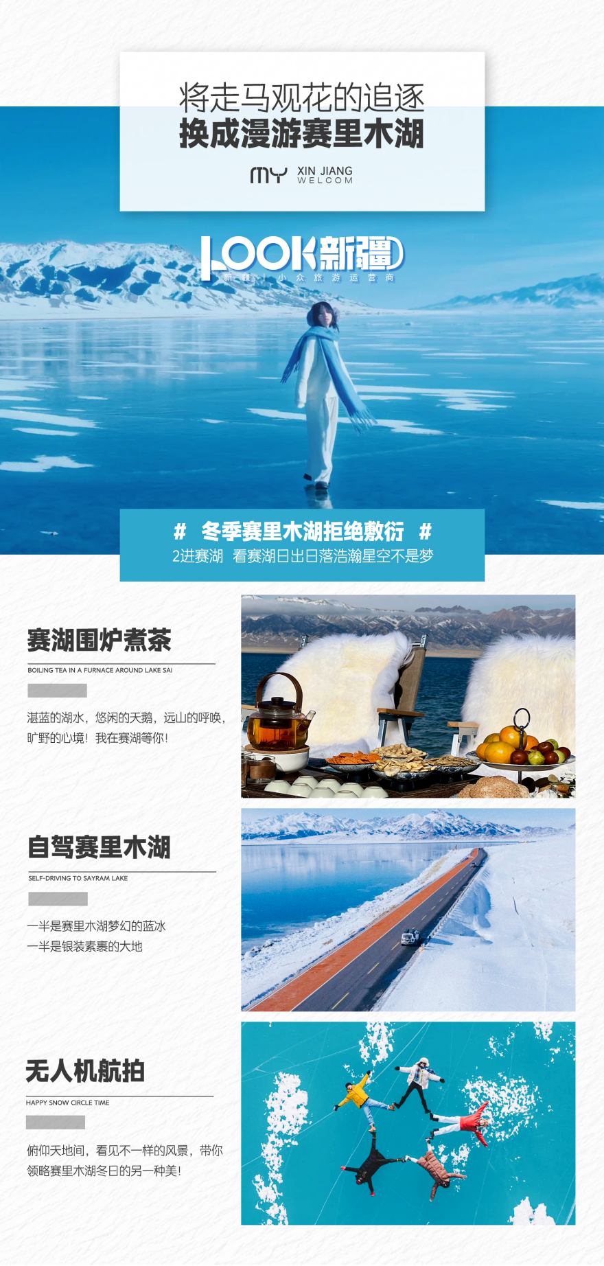 14:00-19:30 午餐自理后,大约行车1.5小时后开启环湖自驾之旅。冬天的赛里木湖别有一番滋味,成块的冰渣在阳光照耀 下显得格外夺目,在赛里木湖你可以看到冰泡蓝冰(一般在1-2月可见)。世界上只有三个地方能看到,一个 是亚伯拉罕湖,一个是贝加尔湖,还有就是赛里木湖。自驾环游【赛里木湖】,可随走随停,观赏赛里木湖冰 泡、冰锥、冰挂、蓝冰、气泡冰…等超多奇观,冬季赛湖颜值爆表,就像一个精绝的蓝色博物馆。期间特别安 排【赛湖围炉煮茶】,赛里木湖畔,看窗外雪景蓝湖,围个炉,煮个茶,聊个话,顺祝冬安!(赠送项目不去 不用,恕无退费)