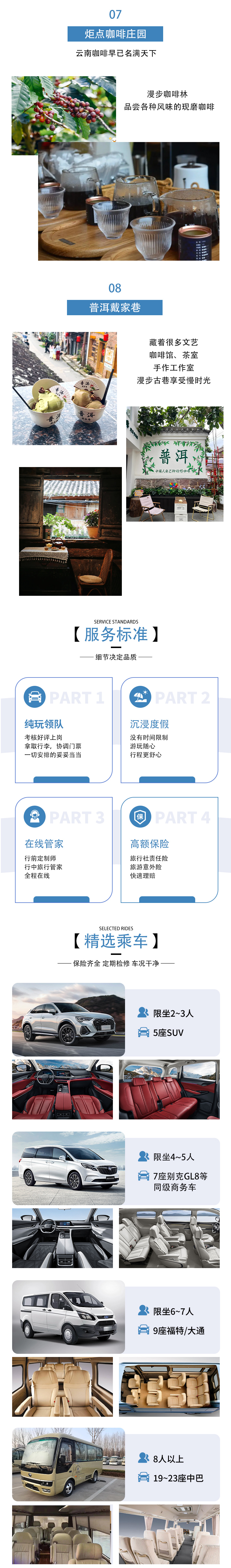 【用车详情】2-3人使用5座SUV,4-5人使用7座商务车,6-7人使用9座商务车,8人以上19~23座旅游中巴