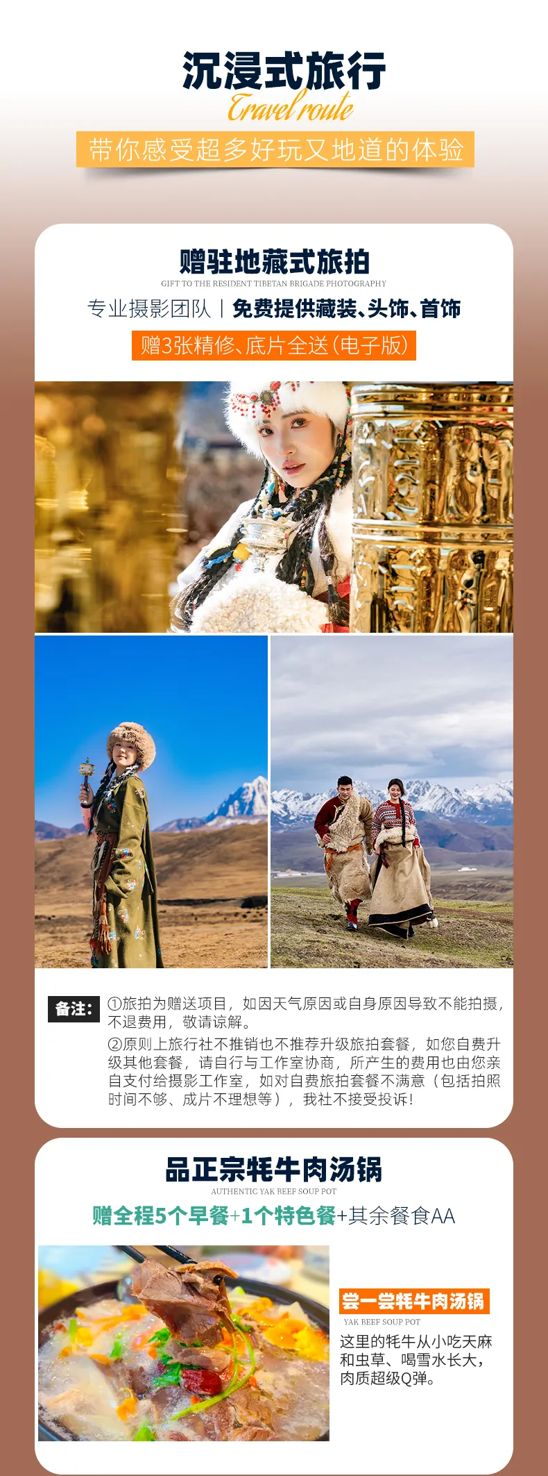 (1)驻地藏式旅拍1次(免费提供藏装/首饰/头饰,赠3张电子版简修,底片全送);