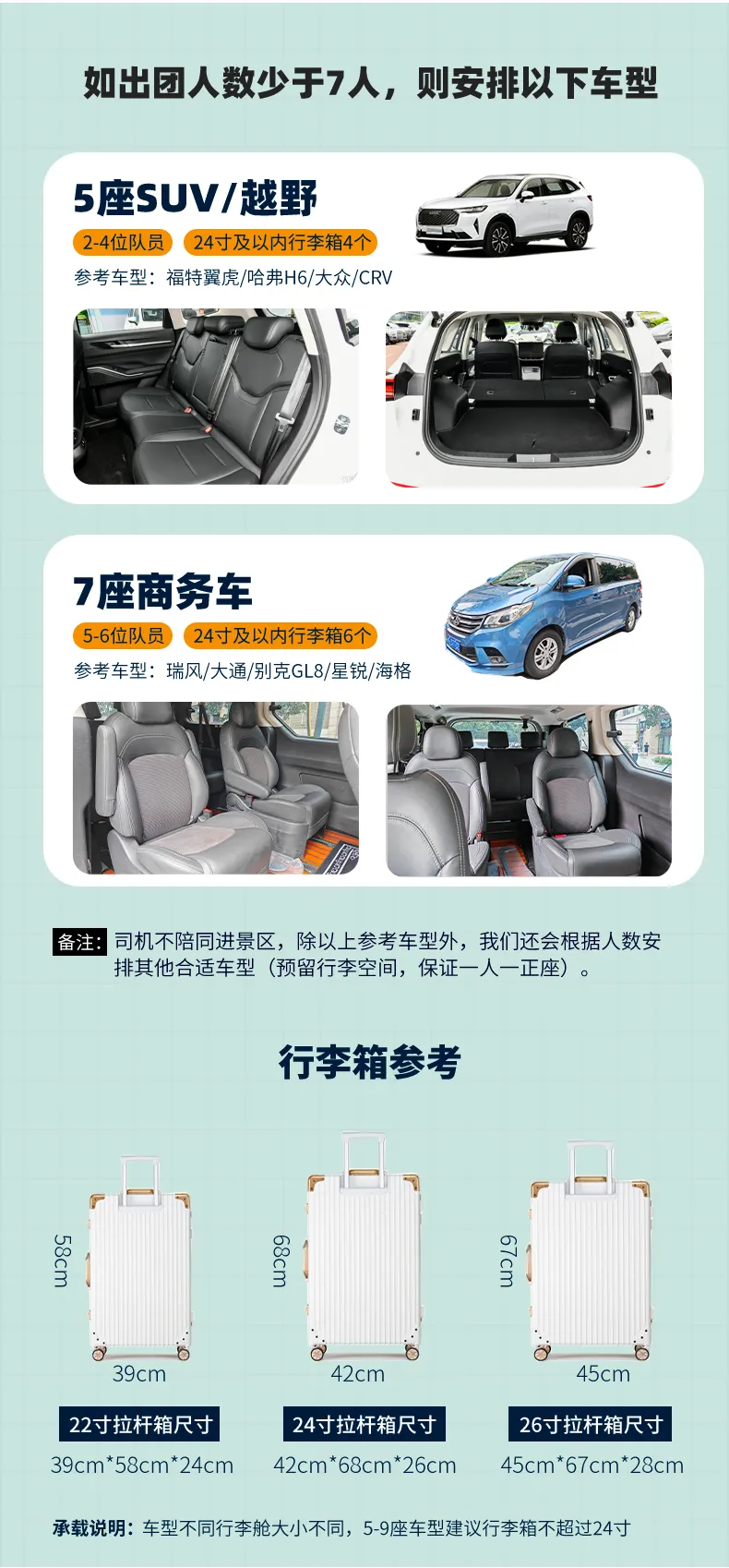 2-4位队员乘坐5座SUV/越野;