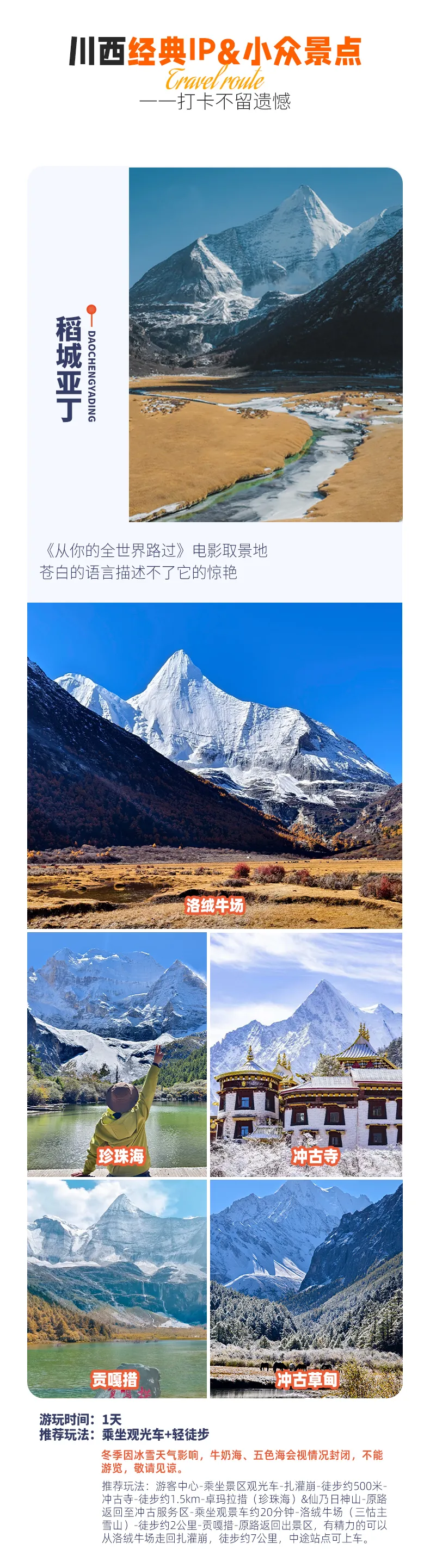 (2)大美稻亚沿途用餐以川菜为主,但因为路况原因,很多时间不能正点用餐,请自备干粮。