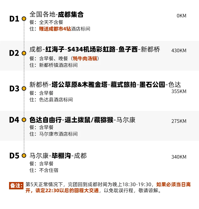 公告:领袖户外的行程安排可能会根据实际突发情况和队员反馈进行调整和优化,但调整不会涉及费用包含的景区、游览天数、集散地点以及住宿标准,最终行程安排以合同内容为准。