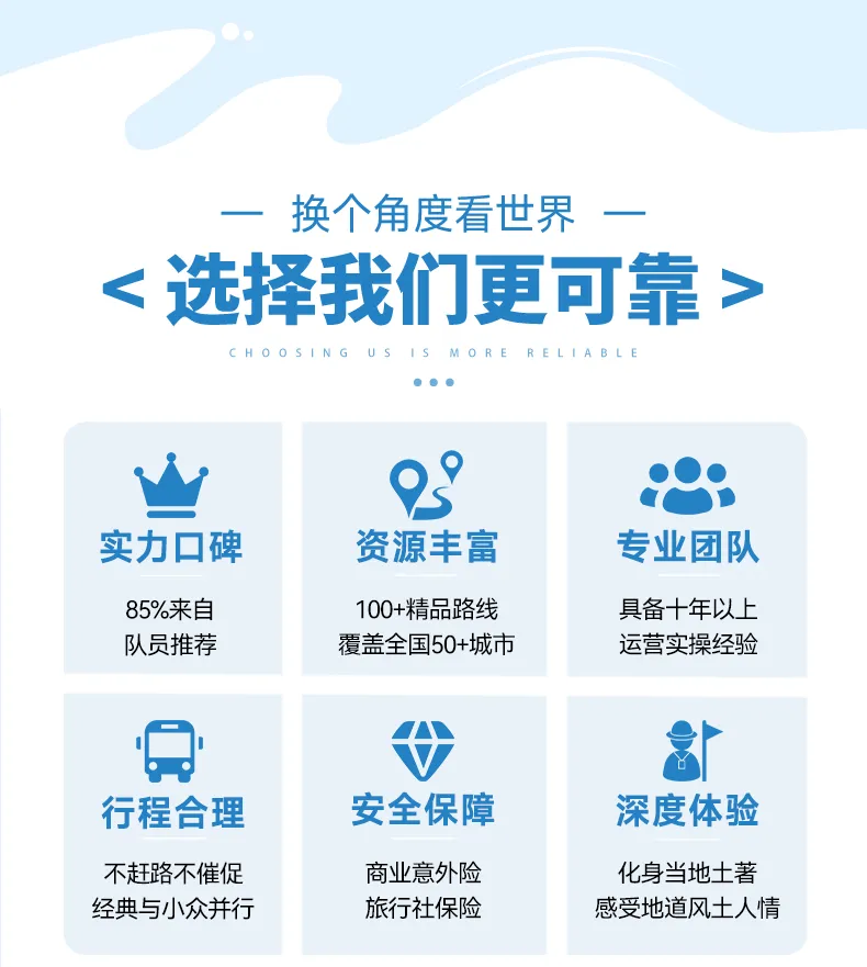 公告:领袖户外的行程安排可能会根据实际突发情况和队员反馈进行调整和优化,但调整不会涉及费用包含的景区、游览天数、集散地点以及住宿标准,最终行程安排以合同内容为准。