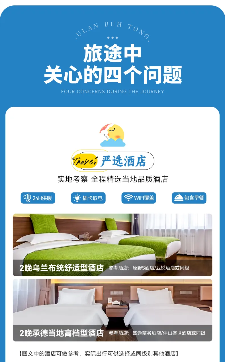 儿童报价说明:儿童均为不占床、不含门票(超高门票自理)、不含早餐的价格(如特殊情况会注明)